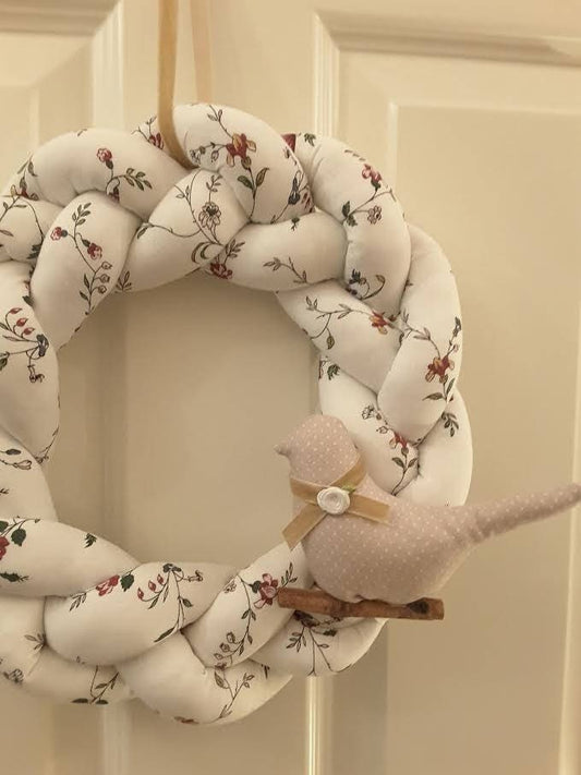 Braided Fabric Wreath with a Bird on a Cinnamon Stick