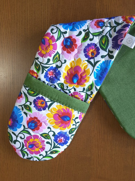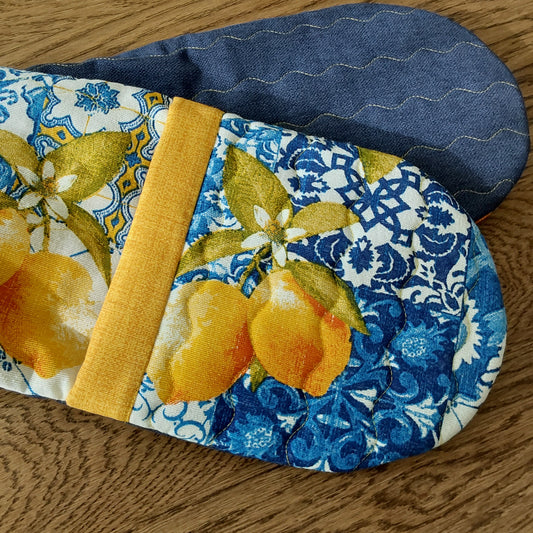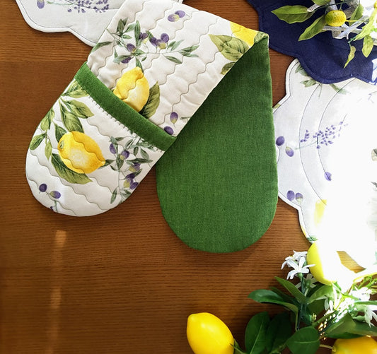 Double Oven Gloves in Lemon Print, Amalfi Style Oven Mitts