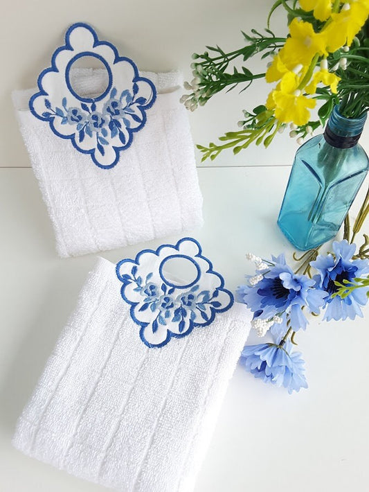Guest Hand Towel With Embroidered Flowers in Blue and White