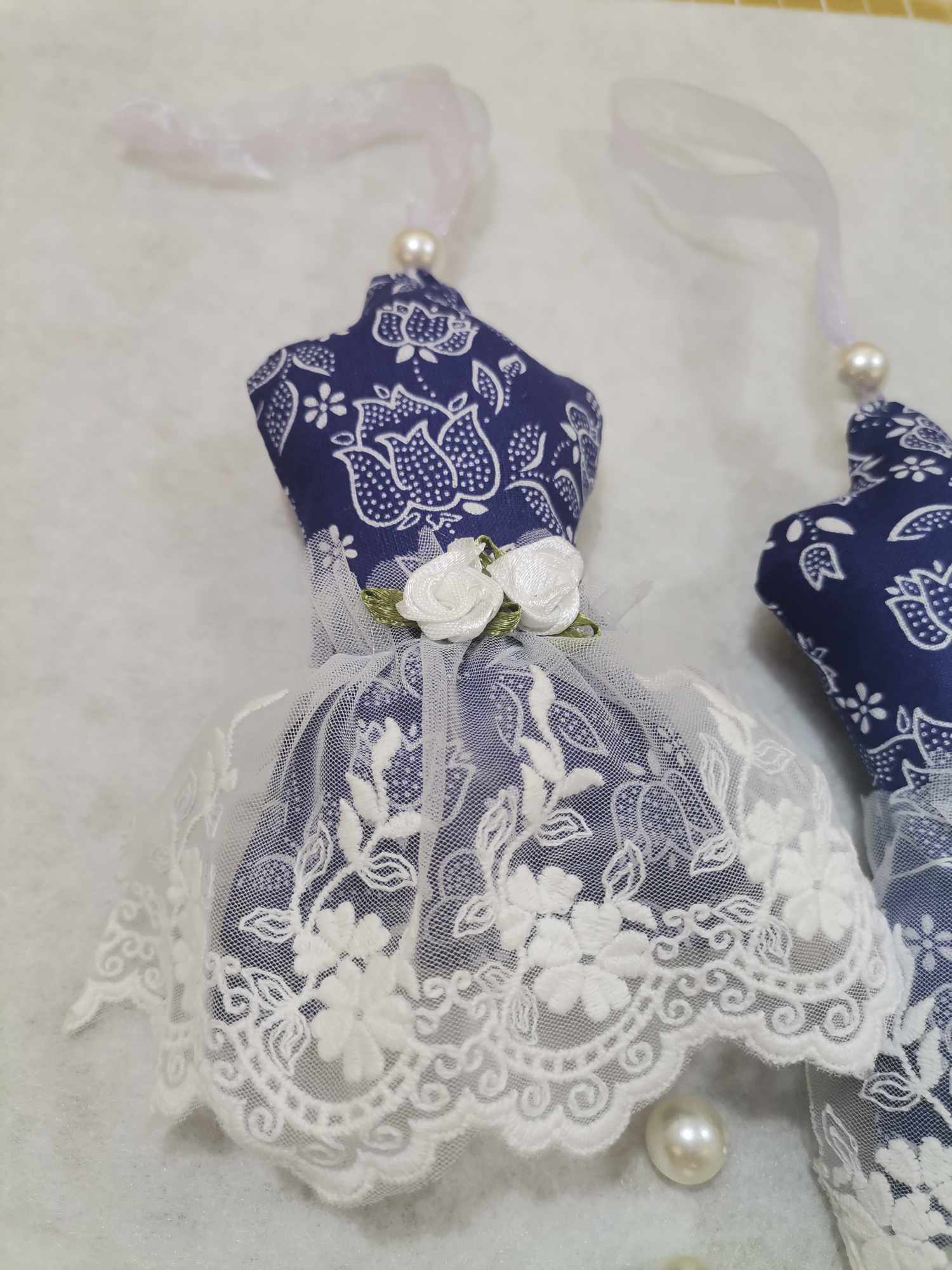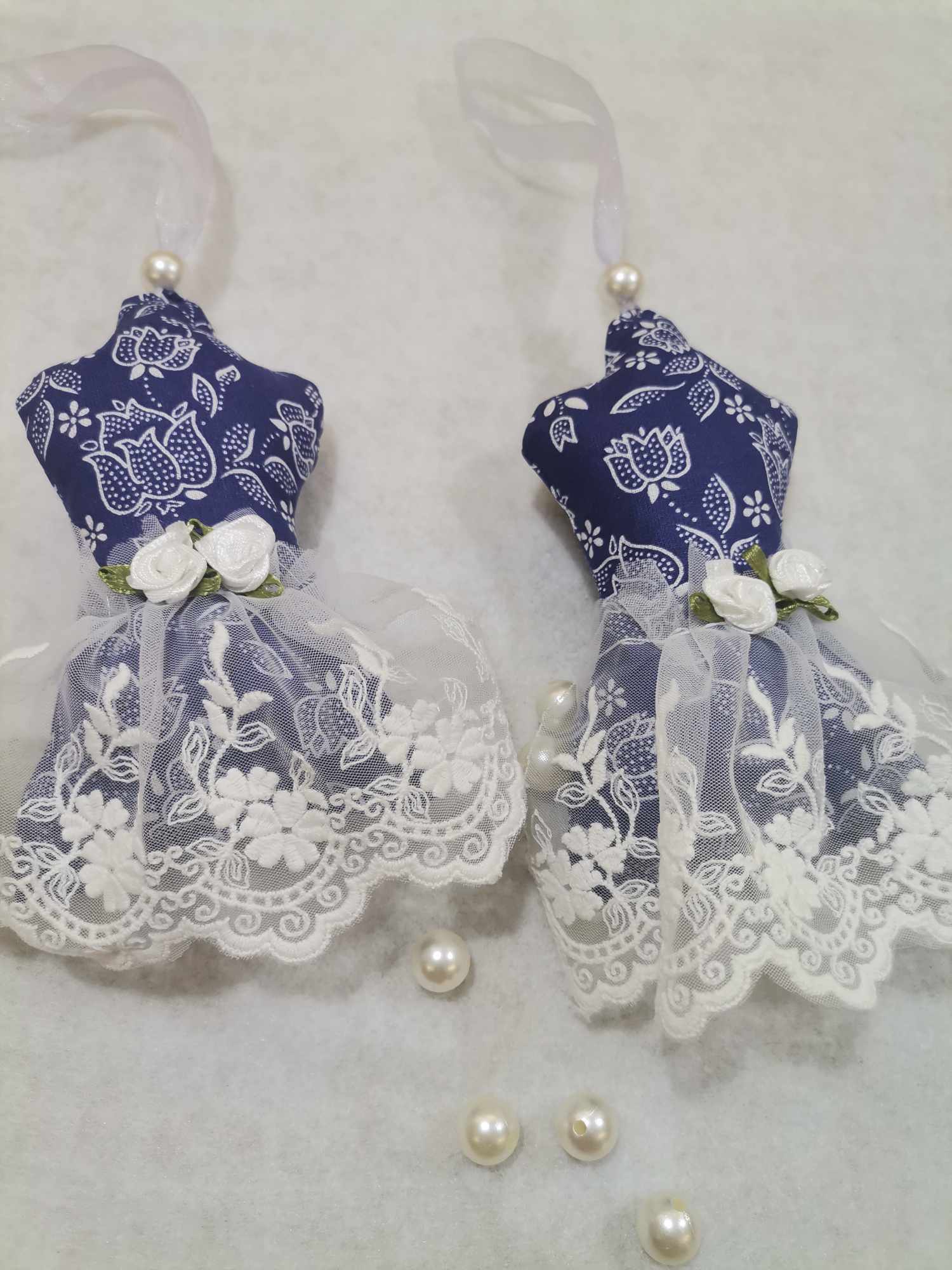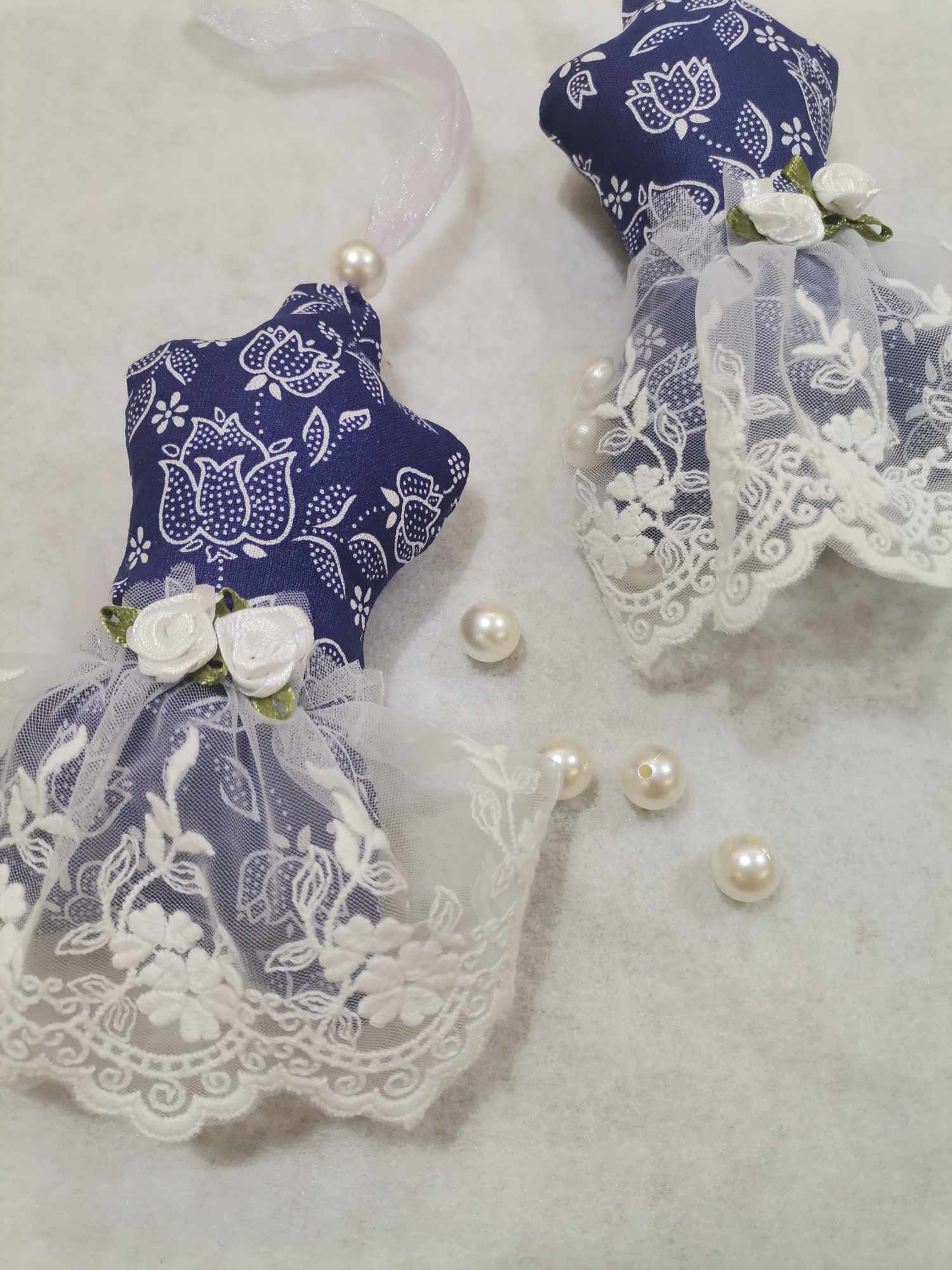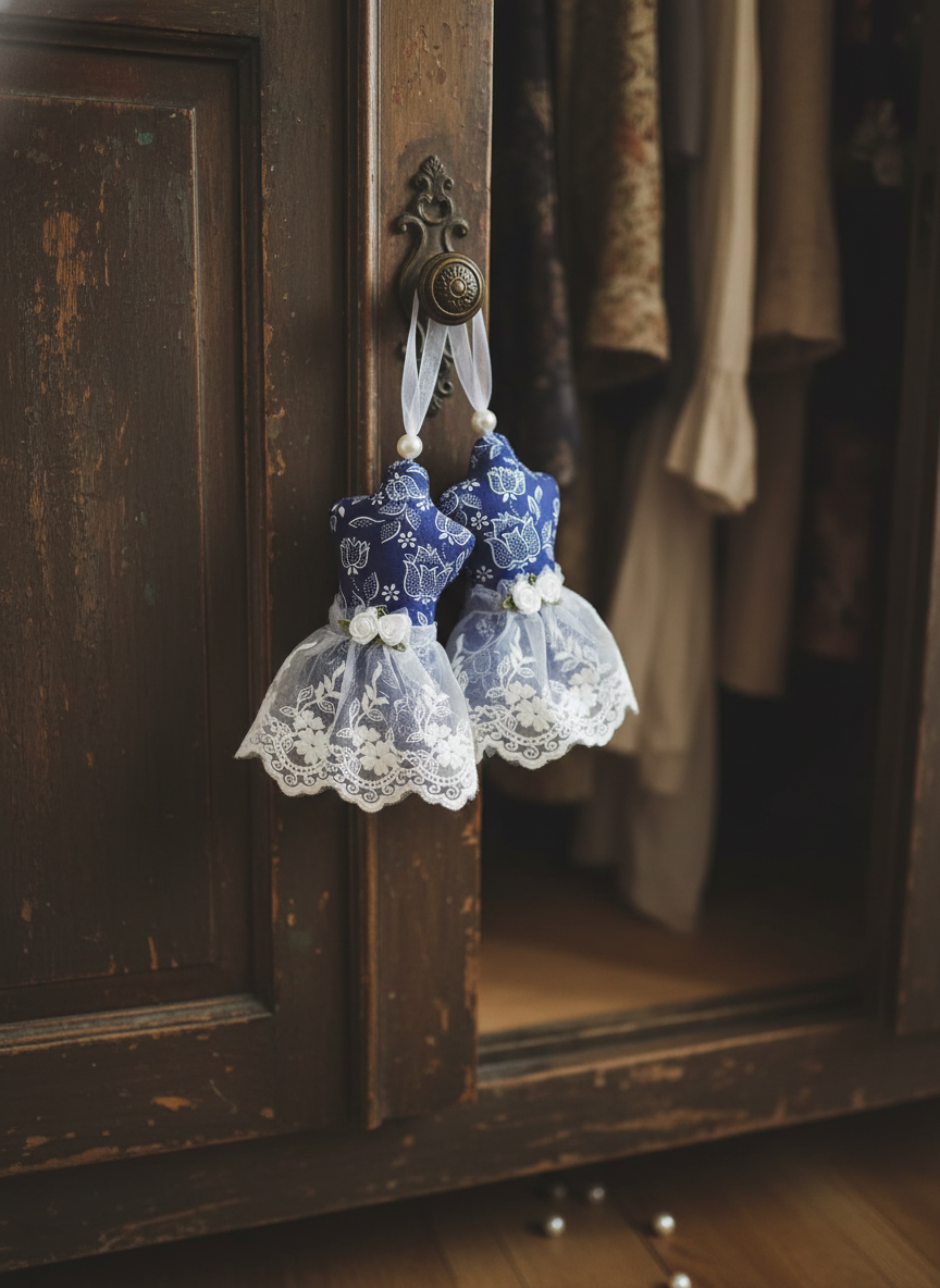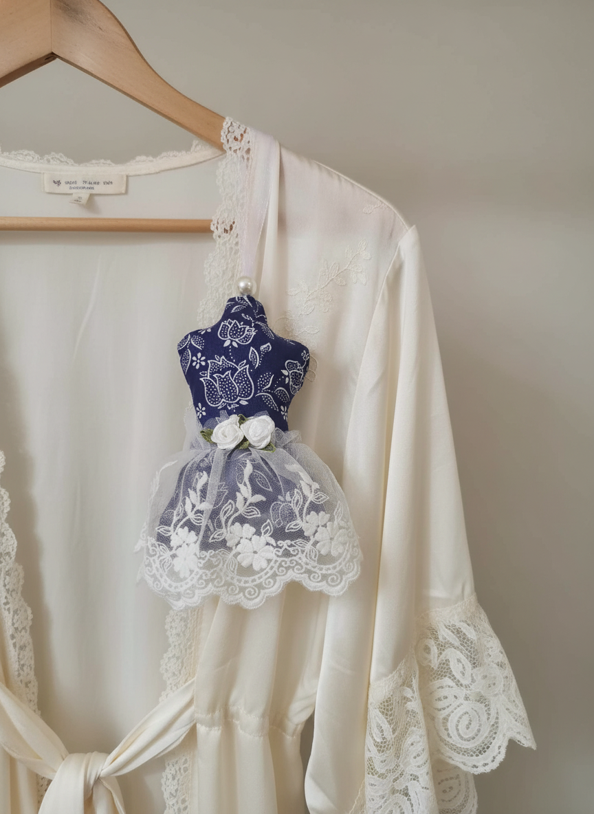 V obliki trupa, okrašene z okrasno čipko in mini vrtnicami, so te obešanke ne samo lep, ampak tudi koristen okras, saj sivka odganja molje in zaščiti vaša oblačila.